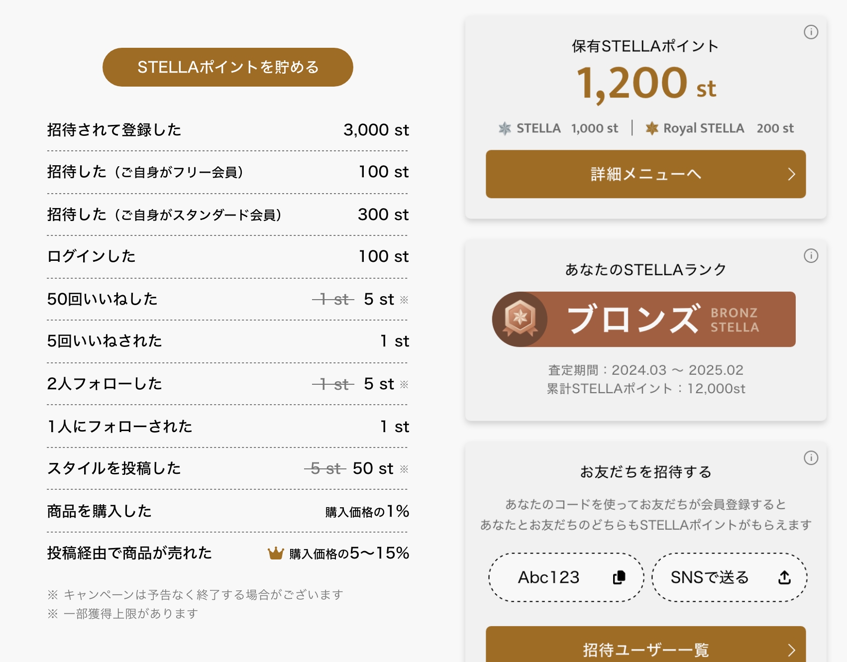 お友だちをアプリに招待したり、毎日のログイン、いいねやフォローをしたりと、アプリを使えば使うほど「STELLAポイント」が貯まっていきます。